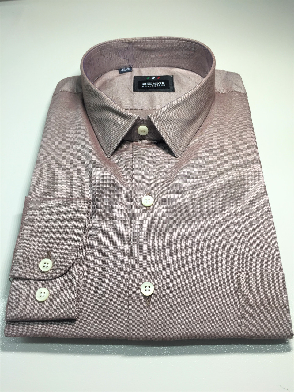 Чоловіча сорочка однотона коричневого кольору з довгим рукавом з кишенею, комір італійський напівприталена. Виготовлена з якісного матеріалу приємного на дотик. Розмірна сітка для даної моделі дивитись Р-3.